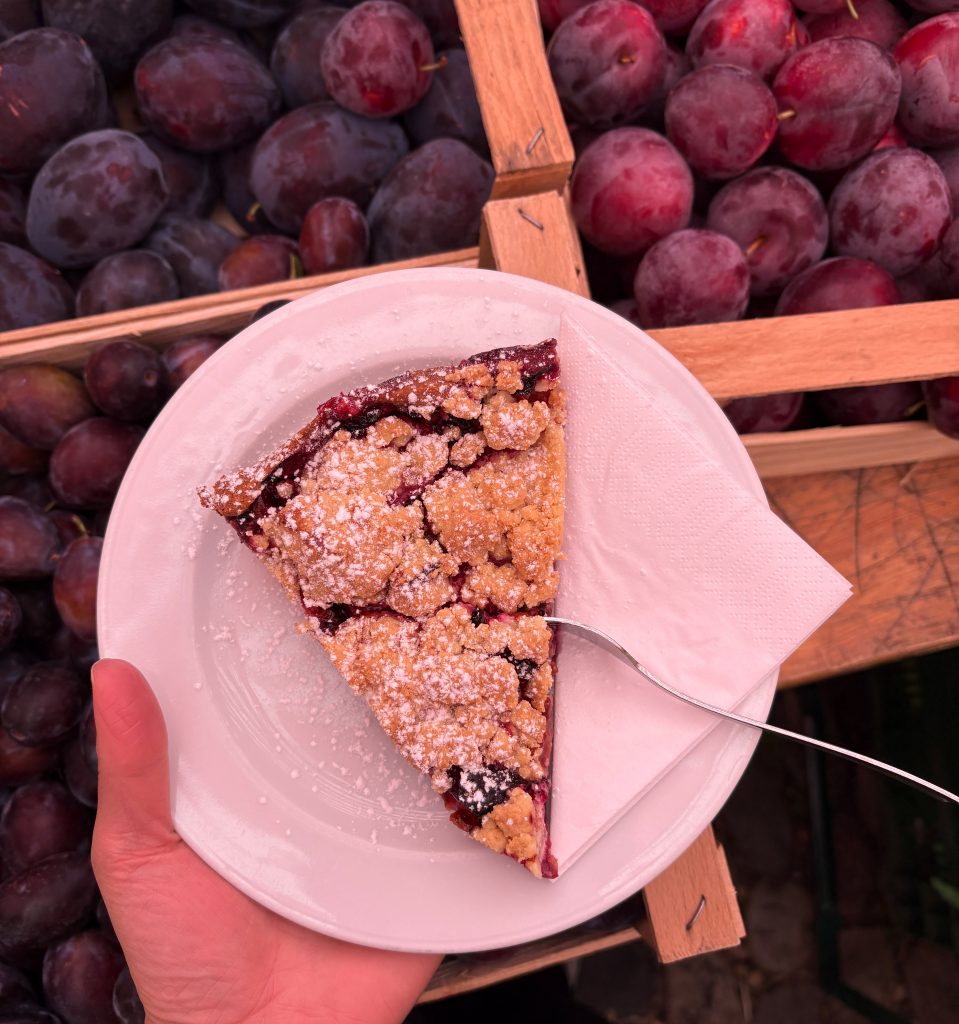 Beide werden mit viel Liebe und frischen, regionalen Zwetschgen gebacken – perfekt für eine süße Auszeit auf unserer Terrasse.